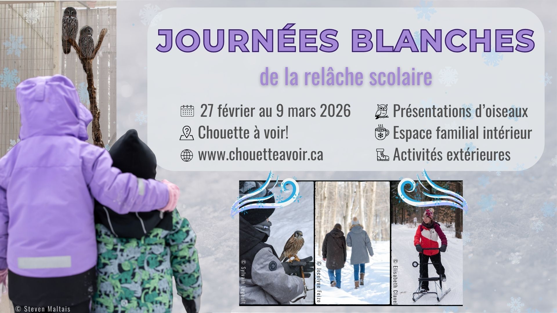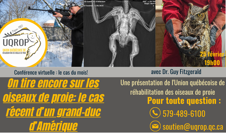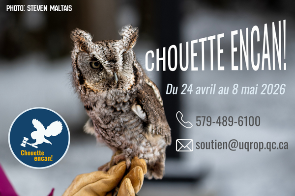 Chouette à voir! est la vitrine qui permet au public de suivre le travail de l’Union québécoise de réhabilitation des oiseaux de proie (UQROP).