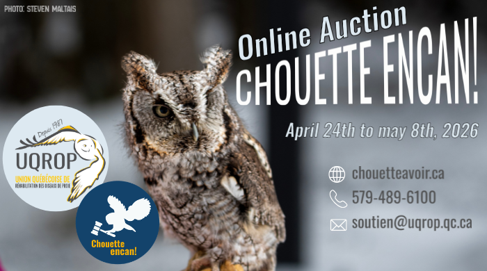The Union québécoise de réhabilitation des oiseaux de proie (UQROP) is proud to present the 2026 edition of the Chouette encan!